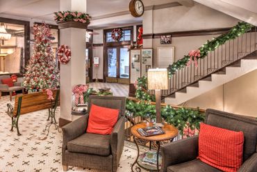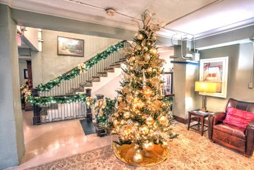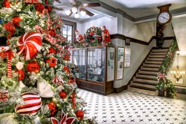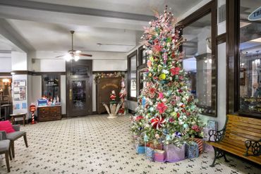 The Holiday Spirit takes over the Redlands Building … all the suites have Christmas Trees, doors are decorated, lobbies are touched everywhere with tinsel, evergreen and ribbons along with the design theme of the year, Candy Canes and Trains and even Grinch. The Queen St Grille has season inspired foods and special things for the little ones for all meals.